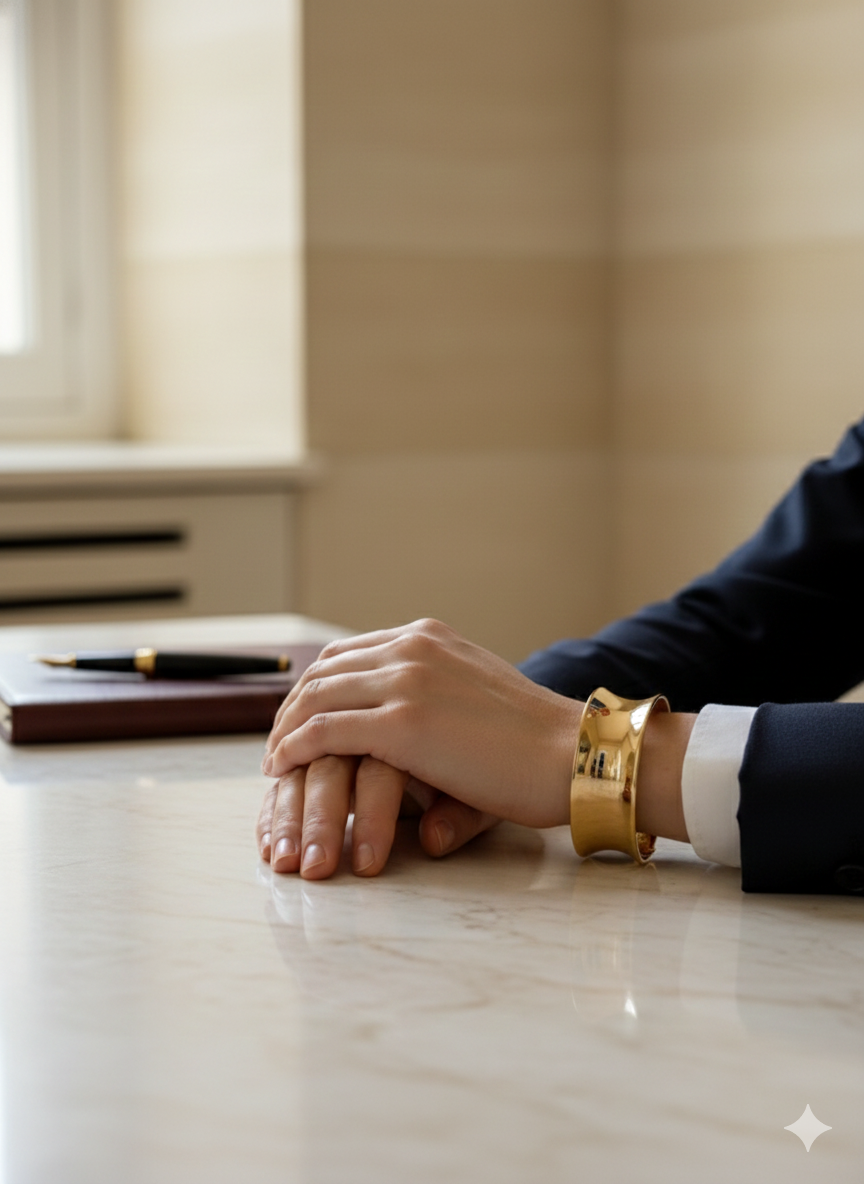 Make a powerful style statement with this Bold Wide Concave Bangle. Featuring a unique curved, light-reflecting surface, this cuff is designed to capture the light from every angle. Crafted from premium stainless steel with a thick 18K gold PVD plating, it offers a luxurious high-shine finish that is both water-resistant and tarnish-proof. The ergonomic concave shape fits comfortably against the wrist, while the secure hidden hinge allows for effortless wear. Perfect for adding a modern, high-fashion edge to a simple dress or professional power suit