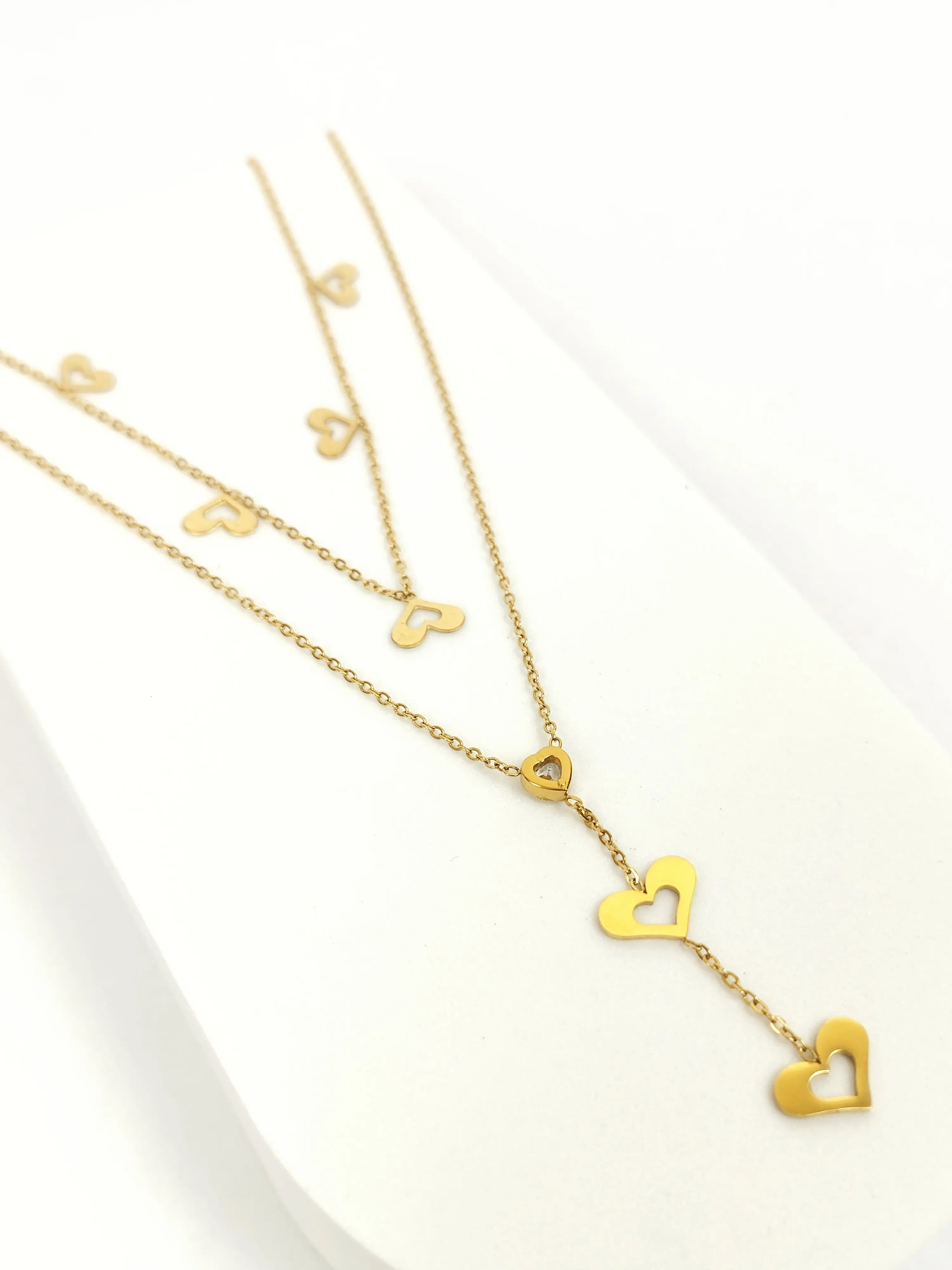 Elevate your style with our stunning multi-layered Anti Tarnish Chain, featuring a cascade of delicate heart-shaped charms. This elegant gold-toned piece adds a touch of romantic charm and is perfect for layering or wearing on its own.