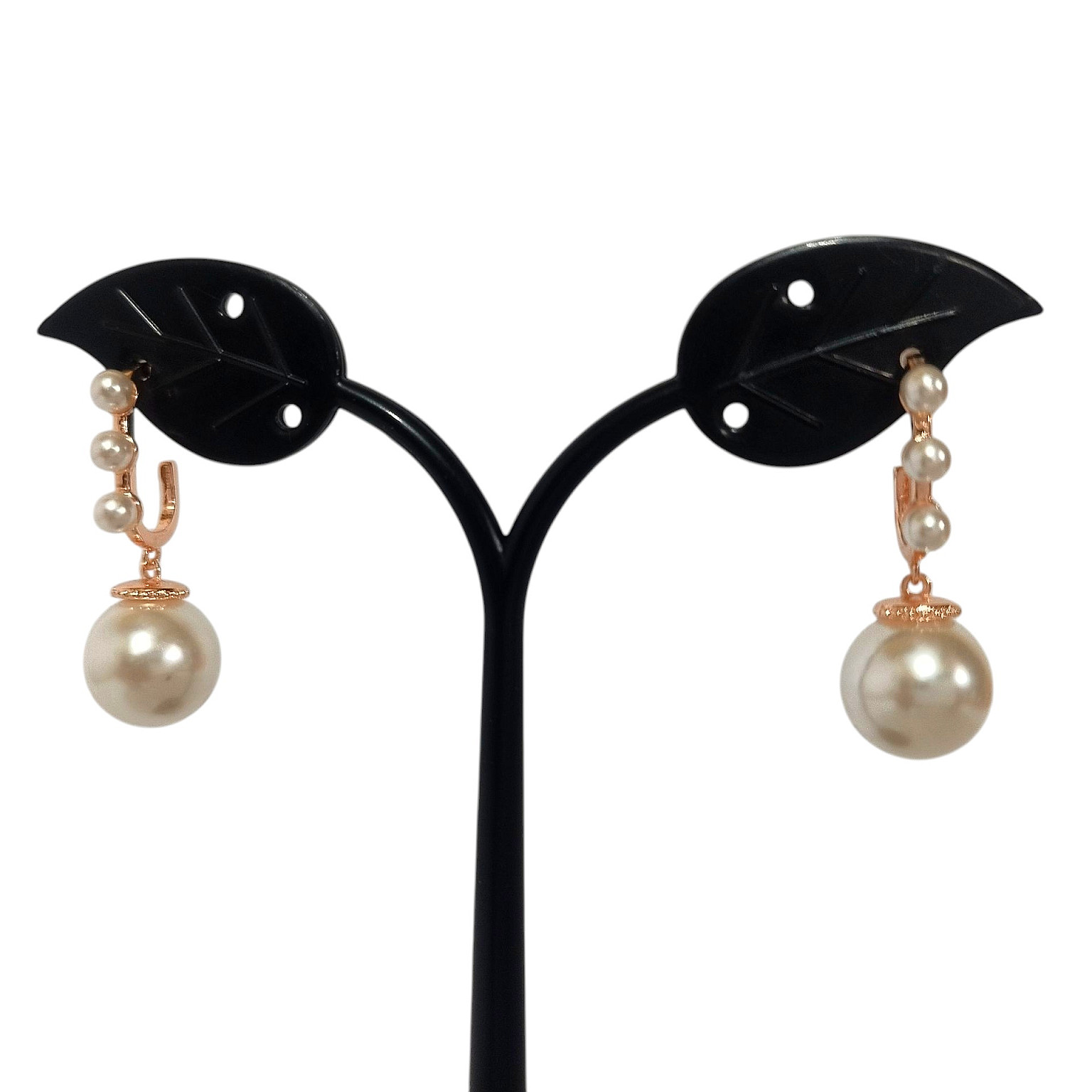 These earrings combine the classic elegance of pearls with a modern hoop design. A series of small pearls gracefully leads to a larger, lustrous pearl drop, creating a timeless yet trendy look.