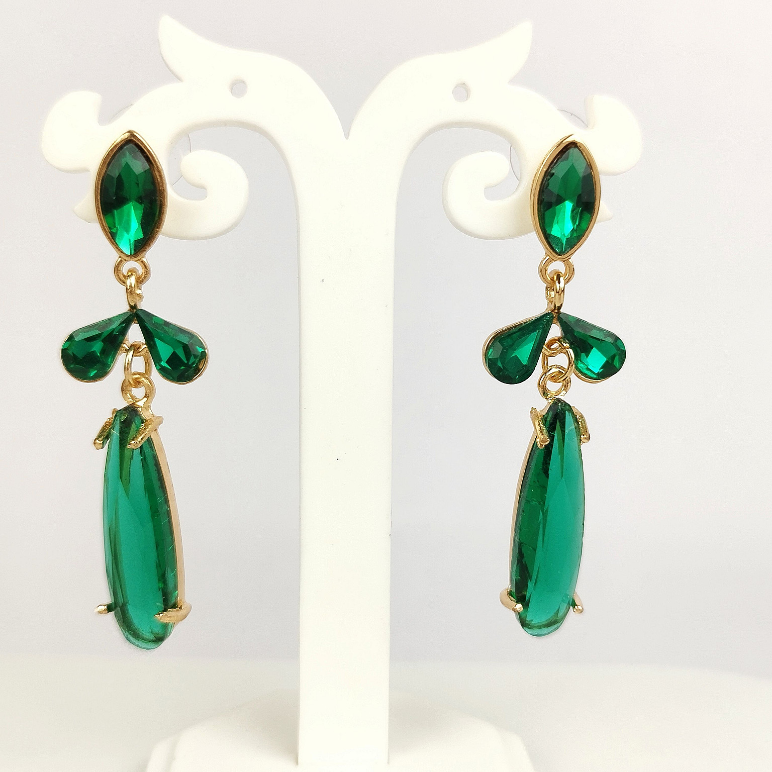 Add a touch of regal sophistication with these stunning dangle earrings. Featuring three tiers of vibrant green, multifaceted stones, this elegant design creates a brilliant cascade of color that's perfect for a night out or a special occasion