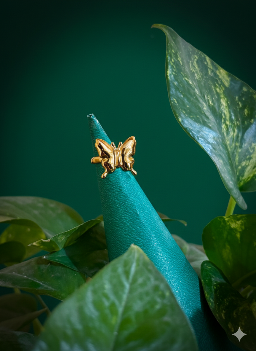 Symbolizing transformation and grace, this butterfly-shaped ring features a solid, high-shine silhouette. Its adjustable band makes it the perfect gift for someone special—no sizing required. Fit: Fully Adjustable