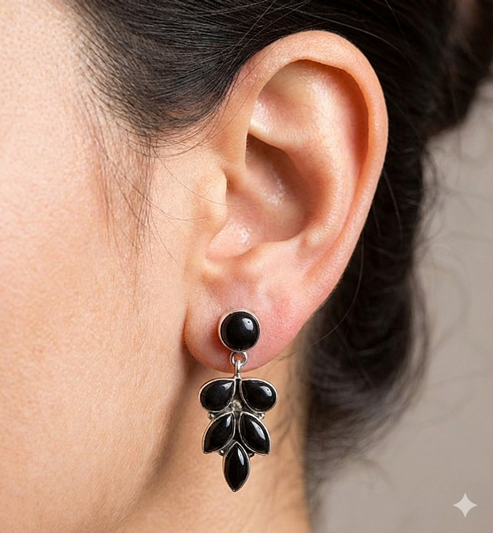 Elegant black earrings for a touch of modern sophistication. These timeless drop earrings feature a striking black stone design, perfect for adding a chic and versatile accent to any outfit.