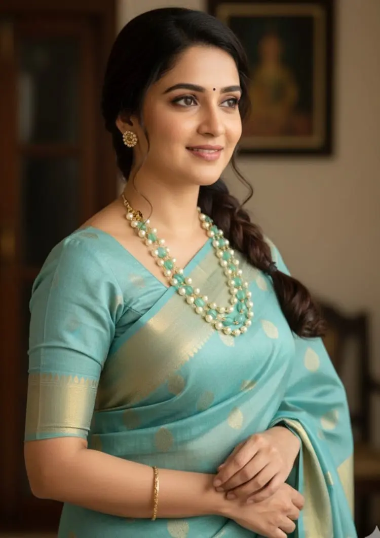 Refresh your jewelry collection with this light and airy three-layered necklace. It features a stunning combination of pearls and polished mint green irregular beads, offering a sophisticated and contemporary look with a touch of color.