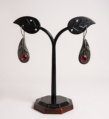 Description: Inspired by nature, these oxidised earrings feature an elegant leaf motif with a rich maroon stone. A perfect pick for festive occasions, parties, or ethnic wear styling.